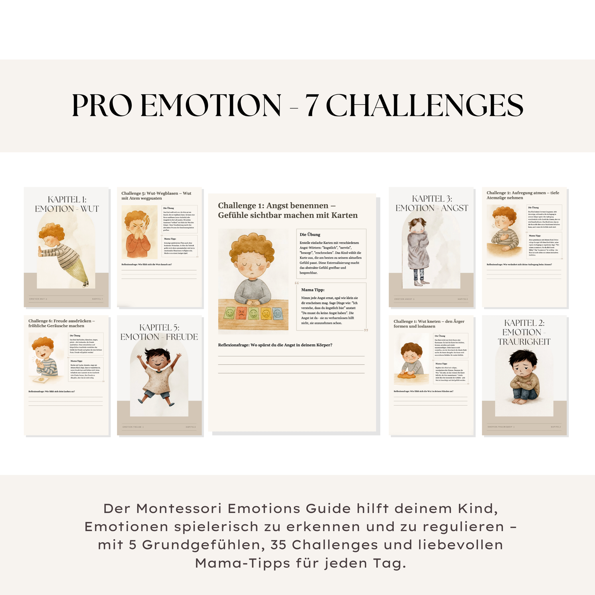 Der Montessori Emotions Guide ist ein digitaler Begleiter für Eltern und Kinder, der hilft, Gefühle spielerisch und kindgerecht zu verstehen.